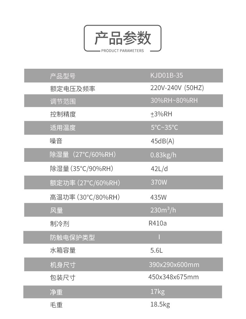 - 除濕量(35℃/90%RH)